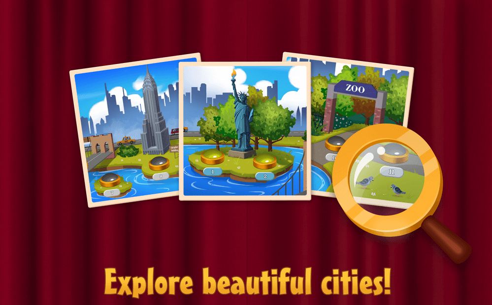 Can you spot all the differences? Find all the differences in the pictures, win tournaments and get your reward! Travel across different cities and discover their sights.
